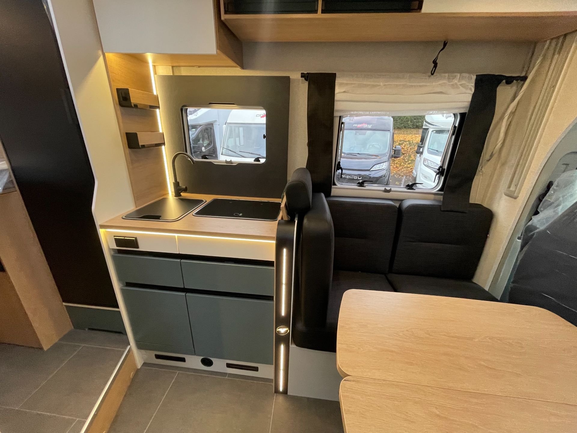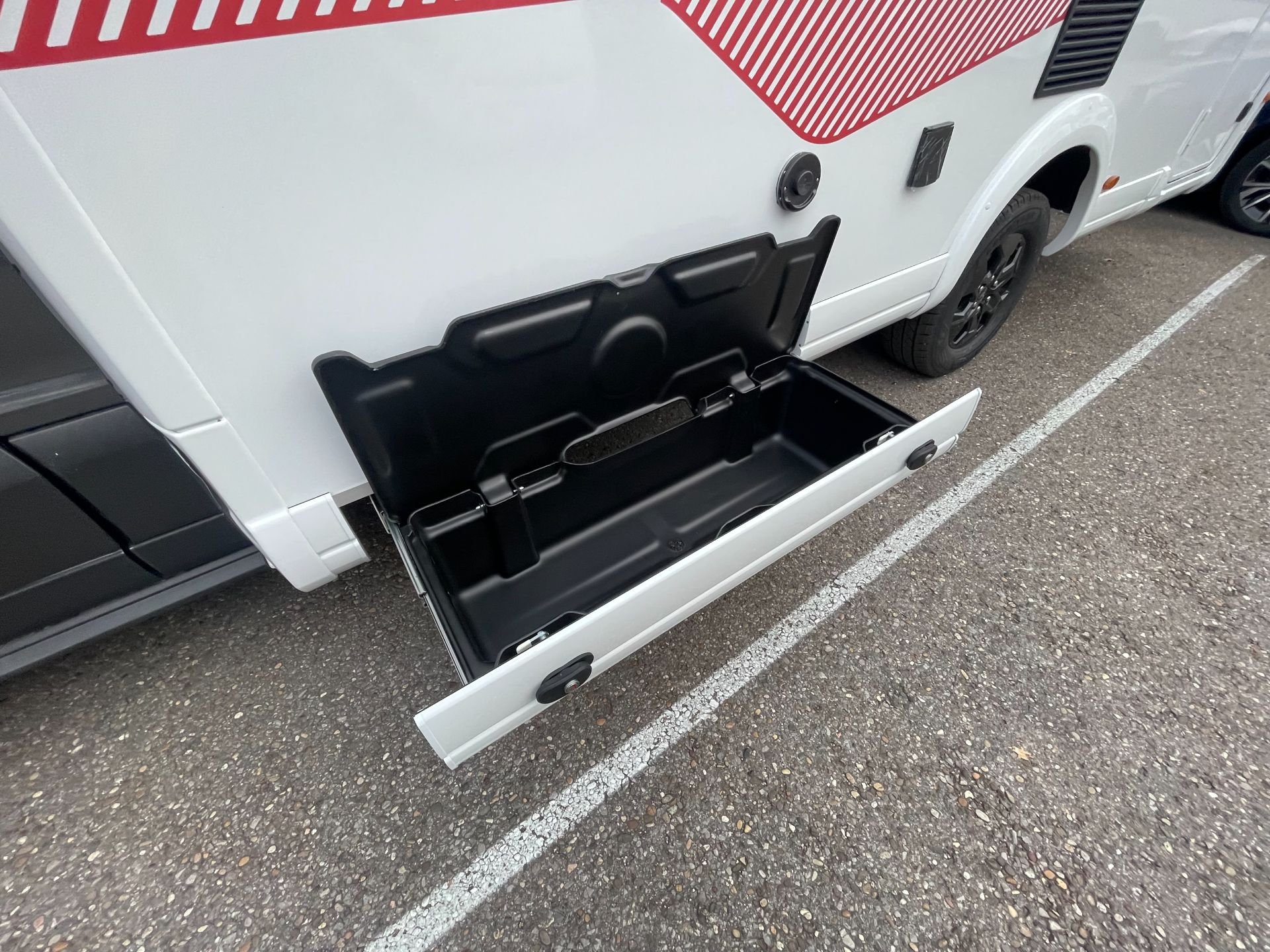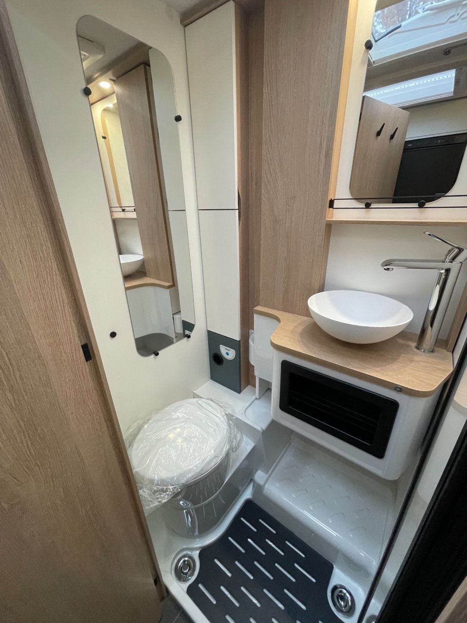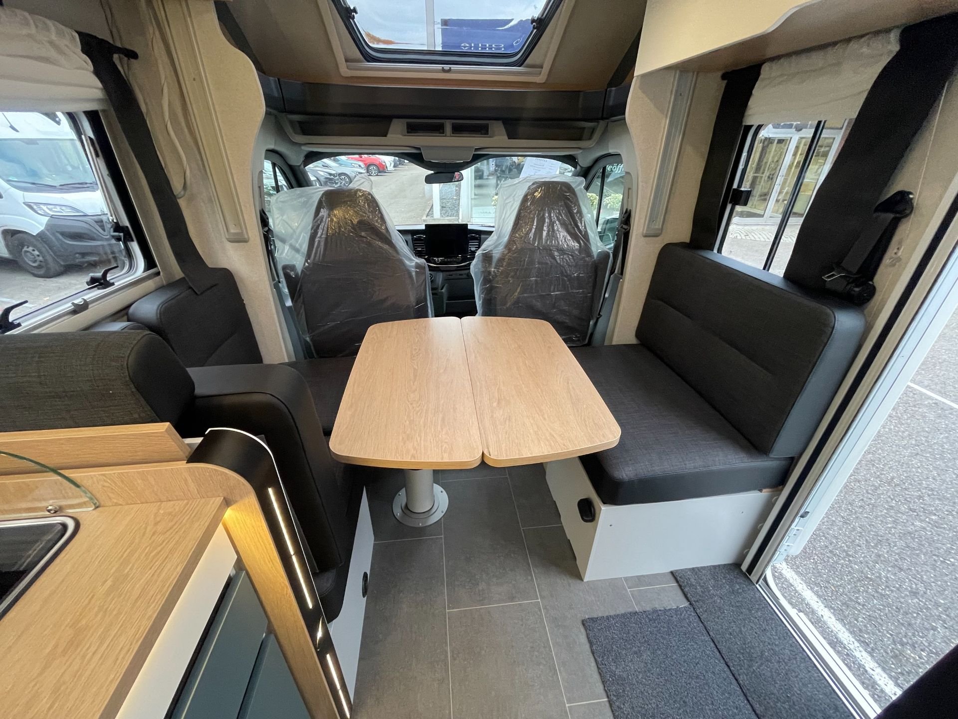 Unser Teil-Integrierter Pilote Atlas A690GJ 165 Automatik auf Ford Transit mit 7 Meter Länge, Platz für bis zu 4 Personen und toller Ausstattung wie 12" Multimediasystem , Solaranlage, , Lithium-Batterie, Rückfahrkamera, Markise und 2-fach-Fahrradträger
